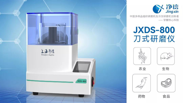 采用上海凈信刀式研磨儀JXDS-800 對樣品進行預處理, 可以進一步提高樣品的均一化程度, 更好地保留分析目標化合物, 為食品樣品中待測組分的提取、凈化、濃縮, 進行定量、定性分析檢測做好充分準備, 保證結果的準確性和重現性。